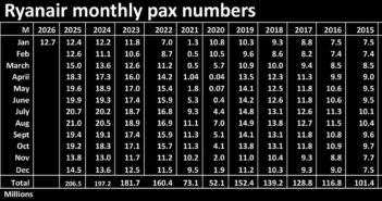 Ryanair recorded 12.7m passengers in January, up 2.l4pc on 2025 and 23.l3pc on pre-pandemic. Rolling annual was 206.9m, up 5pc…