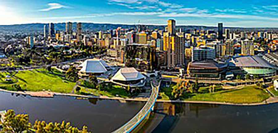 Proceed to Victoria Square, the central public space in the city’s grid layout designed by Colonel William Light in 1837 with a statue of Queen Victoria placed in 1894 and surrounded by lawns and trees.
