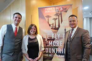 Rachel Lewis of South Africa Tourism and Hasan Mutlu, Onur Gul and Sean Alper Kanburoglu of Turkish airlines hosted key trade at a screening of Long Walk to Freedom to celebrate the centenary of Nelson Mandela. Picture shows Pat Dawson CEO of the ITAA with Hasan Mutlu Ireland country manager of Turkish Airlines.