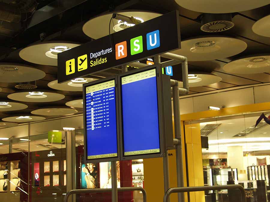 The airport comprises four terminals—T1, T2, T3, and T4, plus the satellite T4S—designed for efficiency. Terminals 1, 2, and 3, located in one complex, serve SkyTeam, Star Alliance, and low-cost carriers like Ryanair, with T1 handling international flights, T2 focusing on Schengen routes, and T3 acting as an extension of T2. Terminal 4 and T4S, connected by a 3-minute automated people mover, are home to Iberia and Oneworld airlines, handling both Schengen and non-Schengen flights. Clear signage in English and Spanish guides passengers, with walking times between T1, T2, and T3 around 10 minutes, while a free shuttle bus links T1–T3 to T4 every 5 to 20 minutes.
