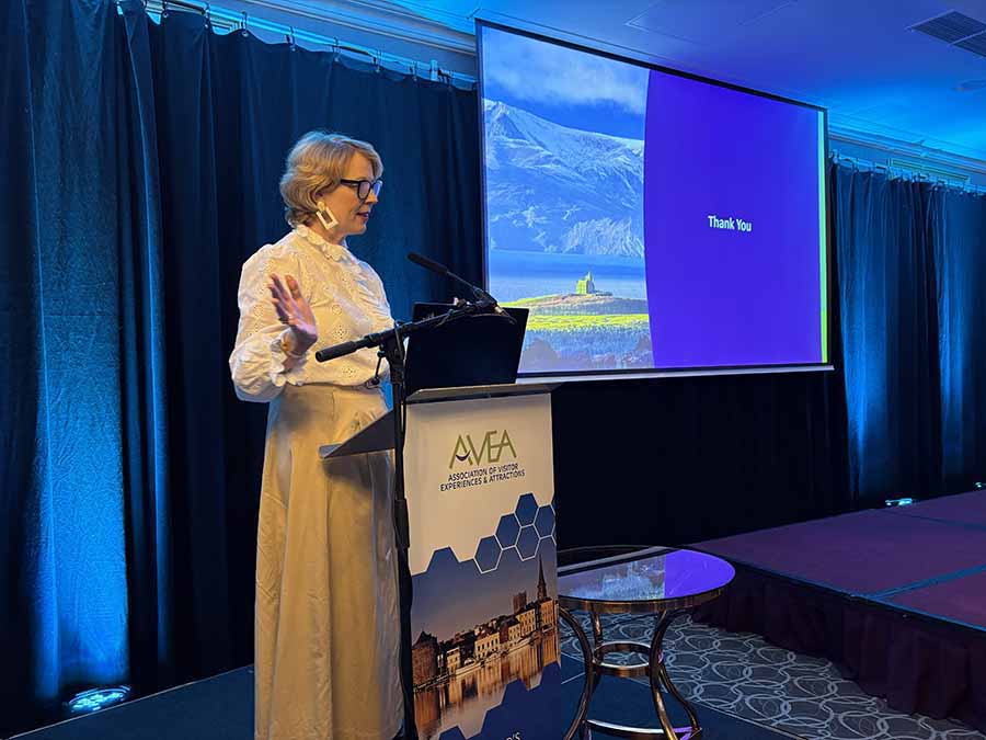 Eimear Callaghan of Tourism NI revealed year-on-year visitor growth at Titanic Belfast, Giants Causeway, and James Fort in 2025 in a presentation to the AVEA conference.