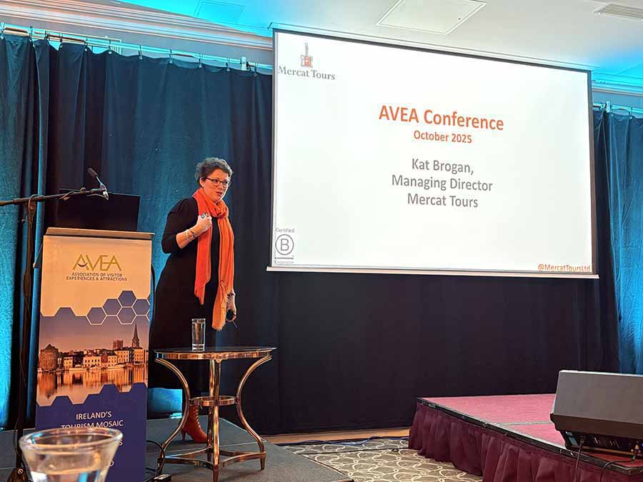 Kat Brogan, a third generation Donegal woman, gave details to the 2025 AVEA conference of the operations and experiences of Mercat Tours, founded in 1985 by her father Steve Brogan, is Scotland’s largest walking tour company, operating from Edinburgh’s Mercat Cross.