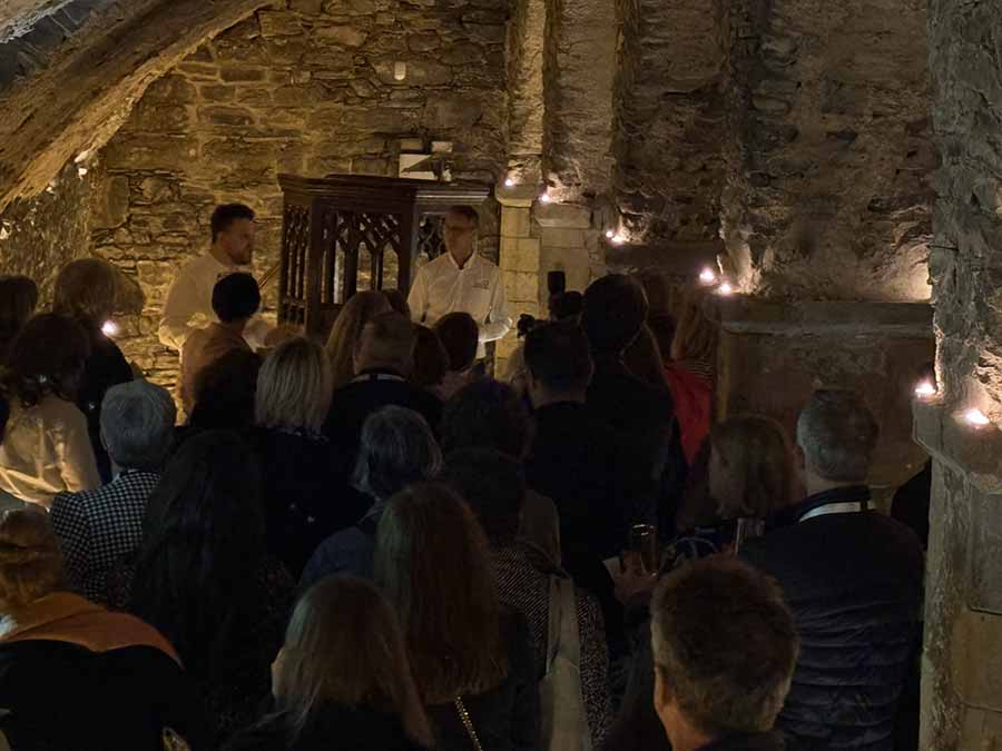 The event took place in the wine cellar of a building built by Peter Rice in the 1400s, featuring Dundry Stone from Bristol.