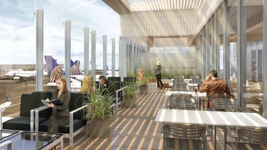 Construction begins later in 2026 with the existing lounge remaining open during the project. The expansion adds more seating, work areas and dining space for the growing Austin market. The terrace overlooks the Austin skyline and airport apron reflecting the city’s mild climate.