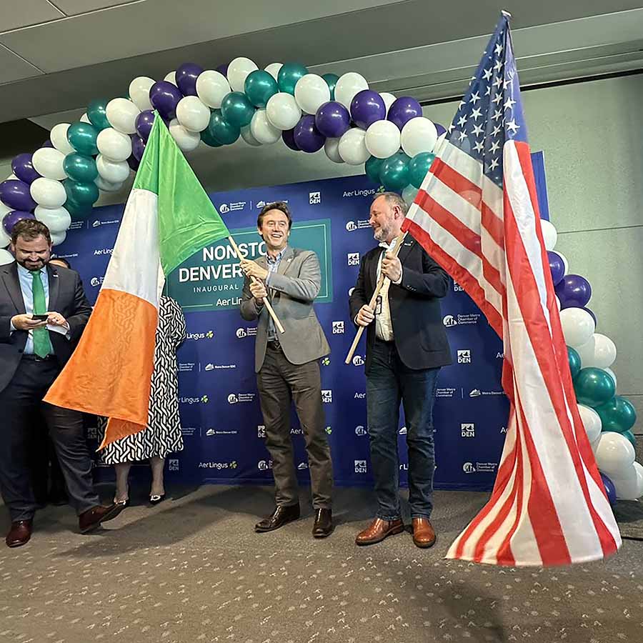 The flight also carried business, tourism and civic leaders who were led by Johnston and DIA CEO Phil Washington. Passengers departing on the inaugural flight from Denver enjoyed a celebratory sendoff with city officials, along with representatives from Aer Lingus, Tourism Ireland and the Irish government. The aircraft stayed on the ground for less than two hours before embarking on its first journey from Denver to Dublin.