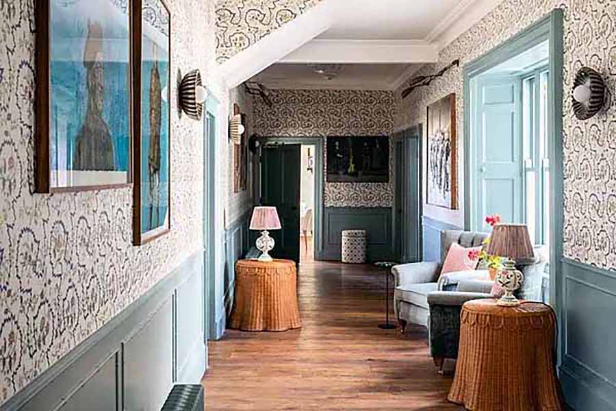 The house features hand-painted ceilings by muralist Michael Dillon, bespoke furniture by John O’Connell, and a curated art collection by leading Irish artists including Mick O’Dea.