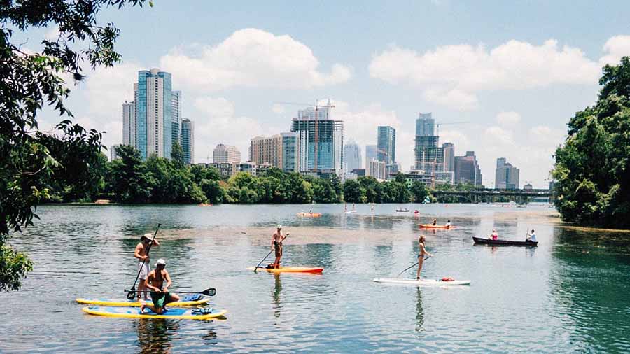 Loop south to Lady Bird Lake and walk along the Ann and Roy Butler Hike-and-Bike Trail, a scenic path with views of the skyline and the Congress Avenue Bridge, famous for its bat colony at dusk. Stop at Jo’s Coffee (1300 S Congress Ave), a quirky café for a coffee or iced latte with a red velvet cupcake, no bookings needed, but arrive promptly to enjoy its eclectic charm.