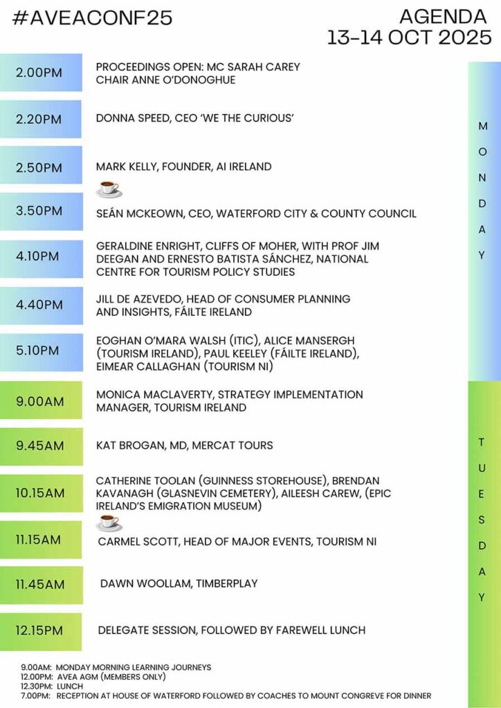 The Association of Visitor Attractions tourism conference in Waterford featured insights from industry leaders on purpose-driven tourism, innovation, data, visitor experiences, and sustainability.