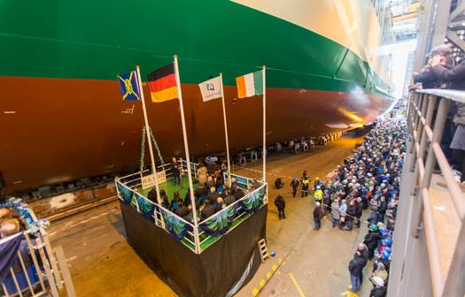 Before that, remaining construction work on the hull will be completed and the vessel fitted out with technical, operational, décor, furnishings and passenger amenities. It will then undergo sea trials, crew training and docking procedures at the ports into which it will operate. Naming ceremony and launch of the new Irish Ferries cruise ferry WB Yeats in Flensburg, Germany, January 19