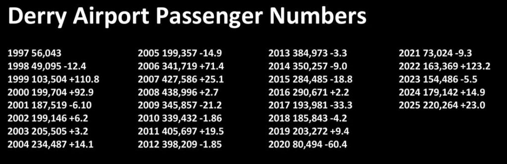 Derry is Ireland’s fastest growing airport with passenger numbers of 220,264, upon 23.2pc on 2024.