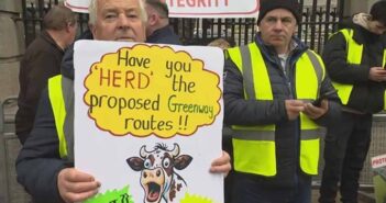 Farmers from 17 groups gathered outside Leinster House to protest compulsory purchase orders for greenways.…