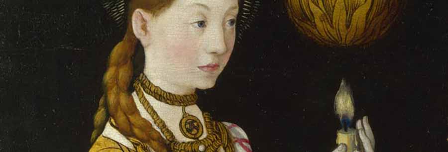 - National Gallery, London – One of Lucas Cranach’s first commissions for the Saxony electors depicts Saint Genevieve holding the candle that miraculously relit after the devil blew it out while she was praying alone one night. The candle was kept at Notre Dame in Paris and was reputed to have healing powers.