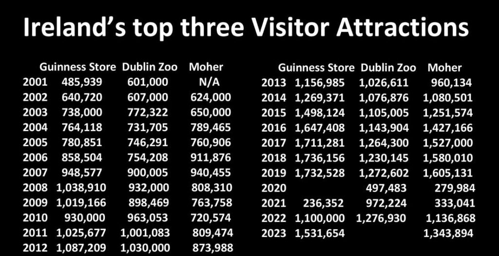 The Cliffs of Moher returned to 84pc of pre pandemic levels with 1,343,894 visitors in 2023.