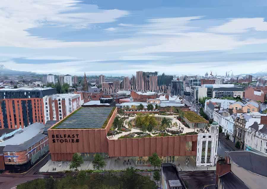 Concept designs for the transformative £100m Belfast Stories project have been unveiled, which will be located at the former Bank of Ireland building and is set to become a public space, visitor attraction, and creative hub by 2030.