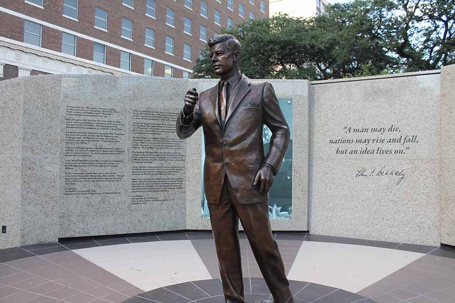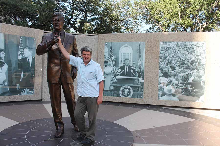 Eoghan Corry with statue of JFK