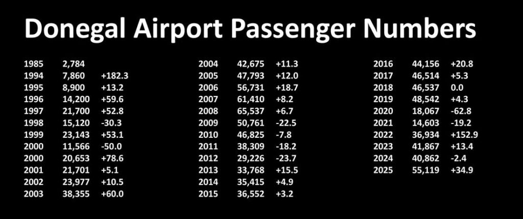 Passenger traffic has now more than tripled since the low point of the pandemic years and reflects growing demand for direct air links from County Donegal.
