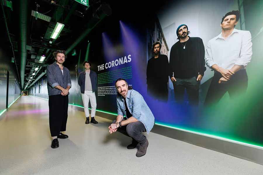 The installation featured images of 11 acts including U2, Thin Lizzy, and The Cranberries. Speakers greeted passengers with sounds of the musical greats. LED lighting and spotlights enhanced the corridor atmosphere. The Coronas officially opened the display.