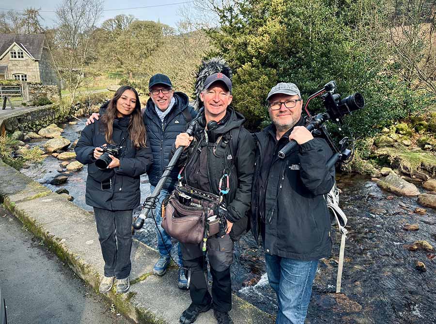 Assistant director Charlotte Fleury; presenter Jérome Pitorin; sound engineer Sylvain Delecrois; and director Franck Poirier, in Glendalough during filming for popular French TV show ‘Echappées Belles’.
