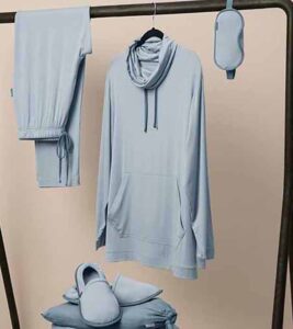 The loungewear is designed to be comfortable for sleeping and moving around the aircraft.