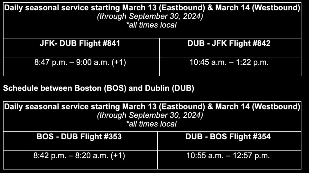 - Enjoy the 2024 marquee launches because 2025 does not look promising. Four airlines in the past three months have had to take their business elsewhere because Dublin airport is constrained. That means JetBlue JFK/Boston and Aer LIngus Denver in May could be the last marquee launches for a time. The politicians seem determined to park the issue of allowing more than 32m passengers at Dublin airport in a process that will take three or four years. It is election year, so passing the buck has taken on a new life. We know where the aircraft stop, but not the buck.