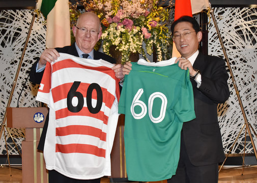 Foreign Affairs Minister Charlie Flanagan has pushed Ireland’s bid to host the 2023 Rugby World Cup at top-level government meetings in Japan. Flanagan and Mr Fumio Kishida, Minister for Foreign Affairs of Japan, exchanged national team jerseys at the meeting in the Japanese capital.