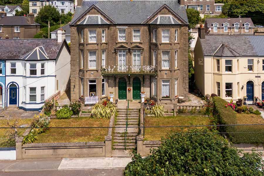 Hegarty Properties seeks offers around €375,000 for The Marine Bar, a 5,000 sq ft Victorian building from the 1850s at Upper Strand in Youghal, with 15 bedrooms suitable for conversion to a residence or boutique hotel.