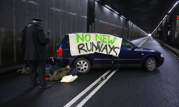 The disruption had caused widespread delays, as traffic was diverted to the outbound tunnel at the airport. The Rising Up campaign group said it was protesting against the impact a proposed third runway could have on climate change and the local area.