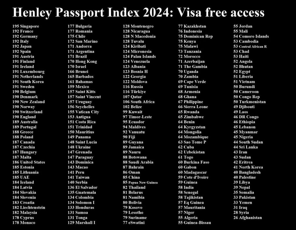 The Passe/Port index places Ireland in the third group (173) with UAE top. The