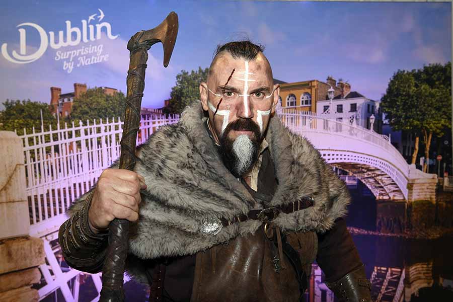 Viking Brendan O’Gorman welcoming tour operators and advising them of his Viking Expierience in Dublin at Failte Ireland Meitheal 2025 in the INEC, Killarney.