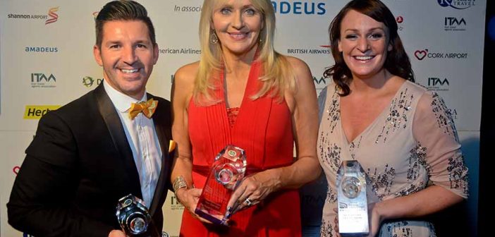 Paul Melinis and Sharon Jordan with Miriam O'Callaghan at the Irish Travel Industry Awards in the Mansion House, January 21 2016
