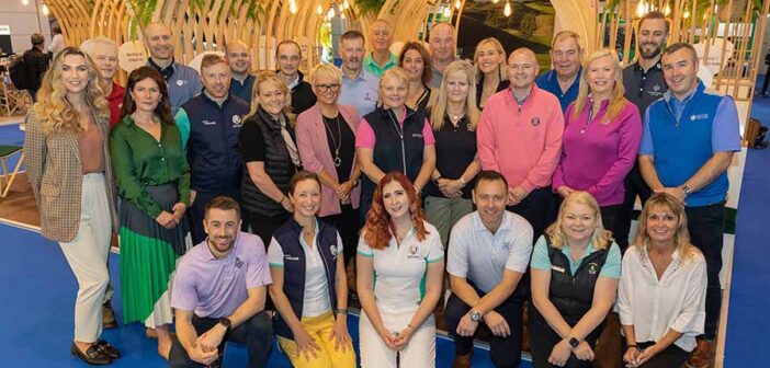 Pictured at the 2023 International Golf Travel Market in Lisbon: Stephen Perry, Loughview Leisure Group; George Diamondis, Tourism Northern Ireland; Matt Sandercock, Mount Juliet Estate; Niall Carbery, Portmarnock Resort & Jameson Golf Links; Brendan Keogh, SWING Golf Ireland; Rory Mathews, Fáilte Ireland; Karen Collins, Killeen Castle Golf Resort & Lodges; Joe Shannon, G Golf Ireland; Amy Maguire, City Hotel Derry / Portrush Atlantic Hotel; Gerry Maguire, Carne Golf Links; Ross Oliver, Galgorm; (middle, l-r) Niamh O’Neill, O’Donoghue Ring Collection; Siobhan O’Shea, Aghadoe Heights Hotel; David Connellan, Tourism Ireland; Breffne McKenna, Castlemartyr Resort; Tracey Mooney, Mourne Mountains & Ring of Gullion; Lynn McCool, Glasson Lakehouse; Fiona Togher, Carne Golf Links; Ger Kelly, Seapoint Golf Links; Marie Collins, Trump International Golf Links & Hotel Doonbeg; Dave Wensley, North & West Coast Links; (front, l-r) James Turpin, The Royal Dublin Golf Club; Audrey O’Connor and Natasha Johnston, both Tourism Ireland; Brendan Mackey, The K Club; Anna Maria O’Mahony, Ballybunion Golf Club; and Nessa McCall, Activities Ireland.