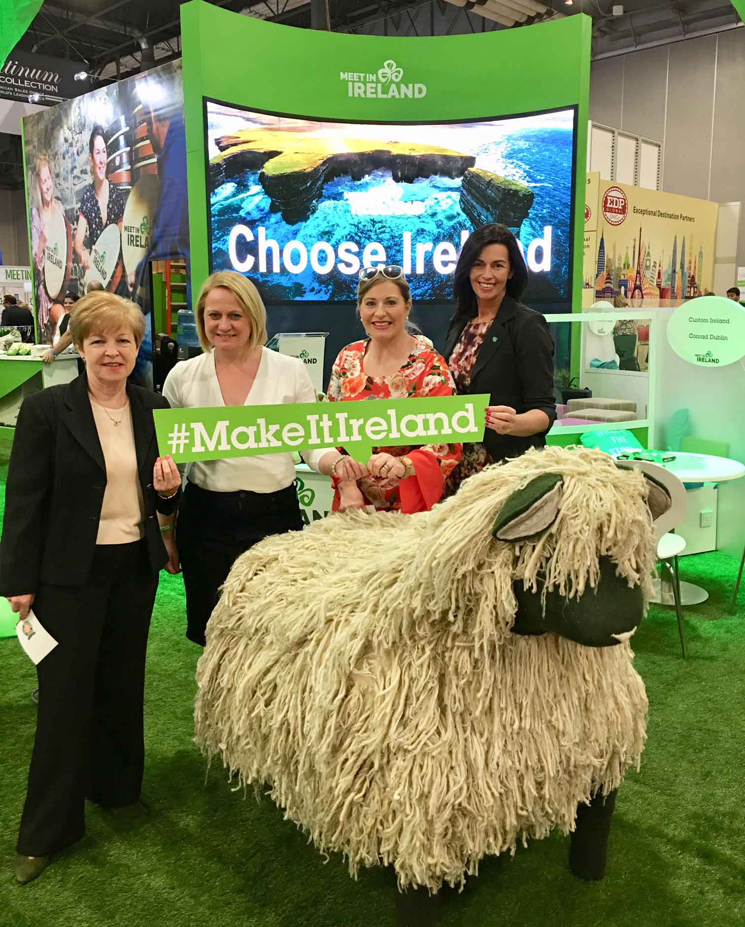 Marie McKown, Tourism Ireland; Jenny Finnegan, Fáilte Ireland; Karen Brosnahan, Shannon Region Conference & Sports Bureau; and Sinéad McGowan, Lough Eske Castle, at IMEX America 2017 in Las Vegas.