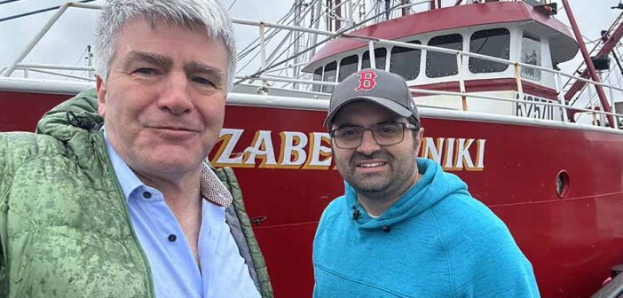 Eoghan Corry and Roy Branco captain of Elizabeth & Niki, a fishing boat in New Bedford, Massachusetts