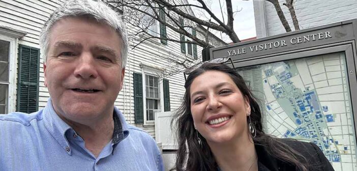 Eoghan Corry and Brynne Aidlin-Perlman, grad student and tour guide at Yale university.