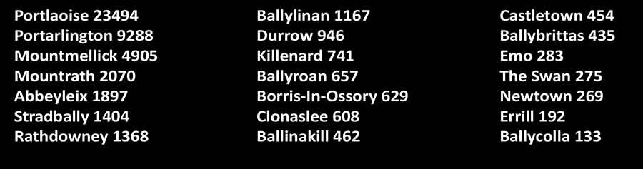 Population of towns in county Laois