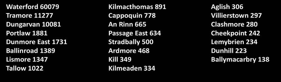 Population of towns in county Waterford