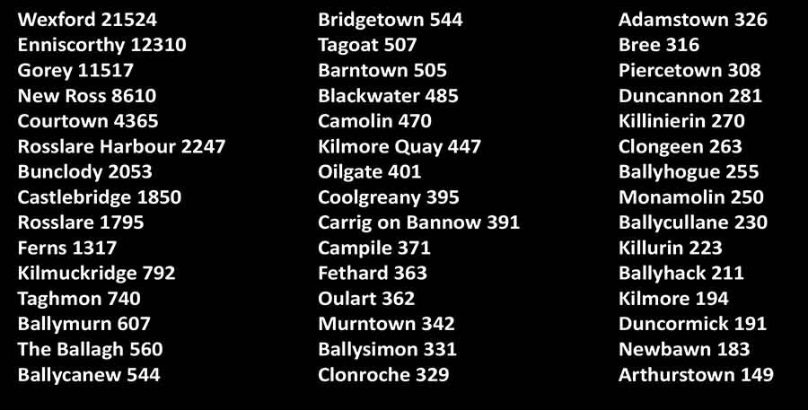 Population of towns in county Wexford
