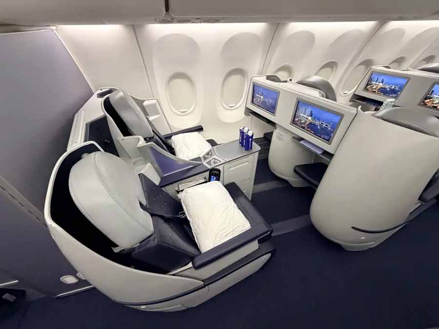 - The premium business section uses Thompson Aero Seating VantageSOLO suites in 1-1 configuration with fully flat seats and sliding doors.