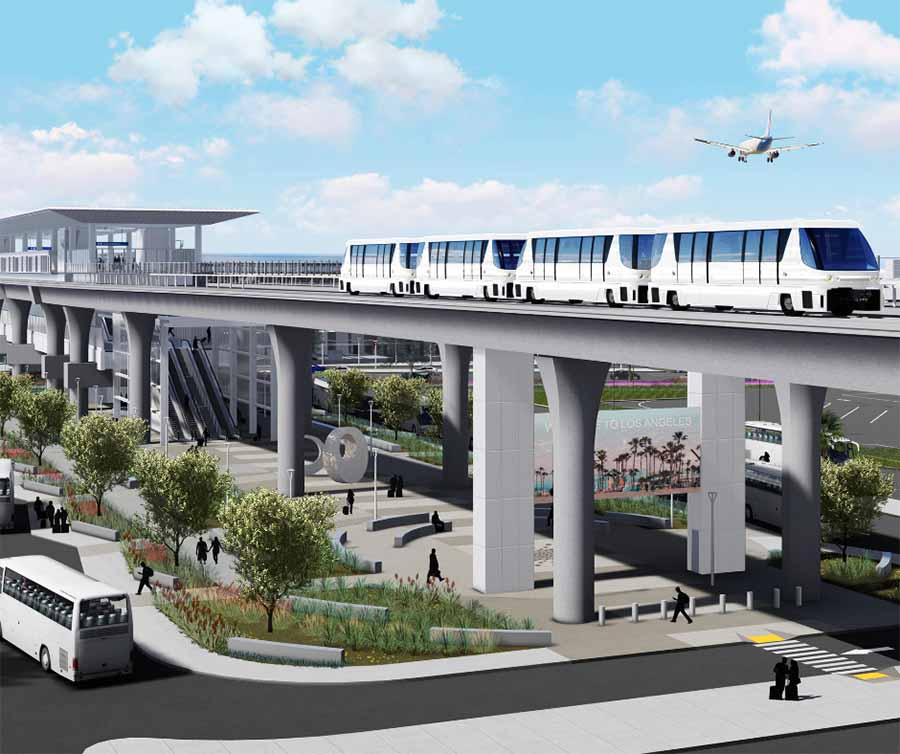 The APM will run on a 2.25-mile elevated track, connecting LAX’s Central Terminal Area with the Los Angeles Metro Rail system.