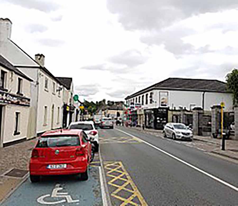 A terrace of eight houses on the north side once called the Parade now the Mall has streets extending under them with cobbles still there forming a square for marching soldiers based at Leixlip Castle. To the left derelict number 33 marks birthplace of General William Francis Roantree one of the top Fenians.