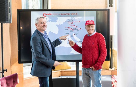 It follows last week’s surprise announcement that Ryanair is to take a 24.9pc stake in Laudamotion, headquarted in Vienna, which will increase to 75pc subject to approval by the EU Competition Authority. Formula 1 legend and aviation veteran Niki Lauda will chair the newly created board and be responsible in his new role for establishing Laudamotion as an Austrian low-fare airline for the scheduled and charter market.