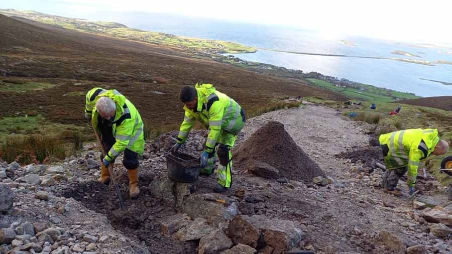 The 4km pilgrim path from the base to the summit of Croagh Patrick in Co Mayo weas repaired during a three-year hand-building project.