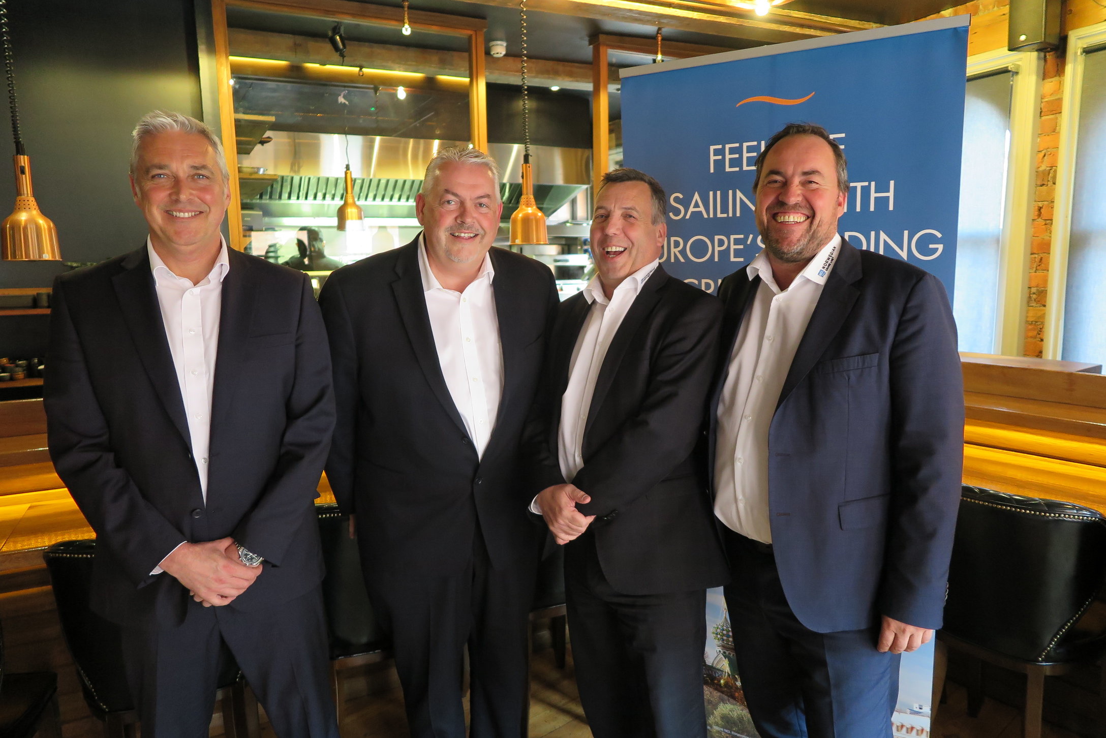 Jeremy McKenna, Head of Sales for Ireland and Britain; Francis Riley, Senior Vice President of Sales & Operations; Dick Wilkinson, General Manager Northern Europe & MEA; and Christian Böll, Managing Director, Europe, Middle East and Africa, at the Norwegian Cruise Line media briefing in Taste at Rustic Stone in Dublin