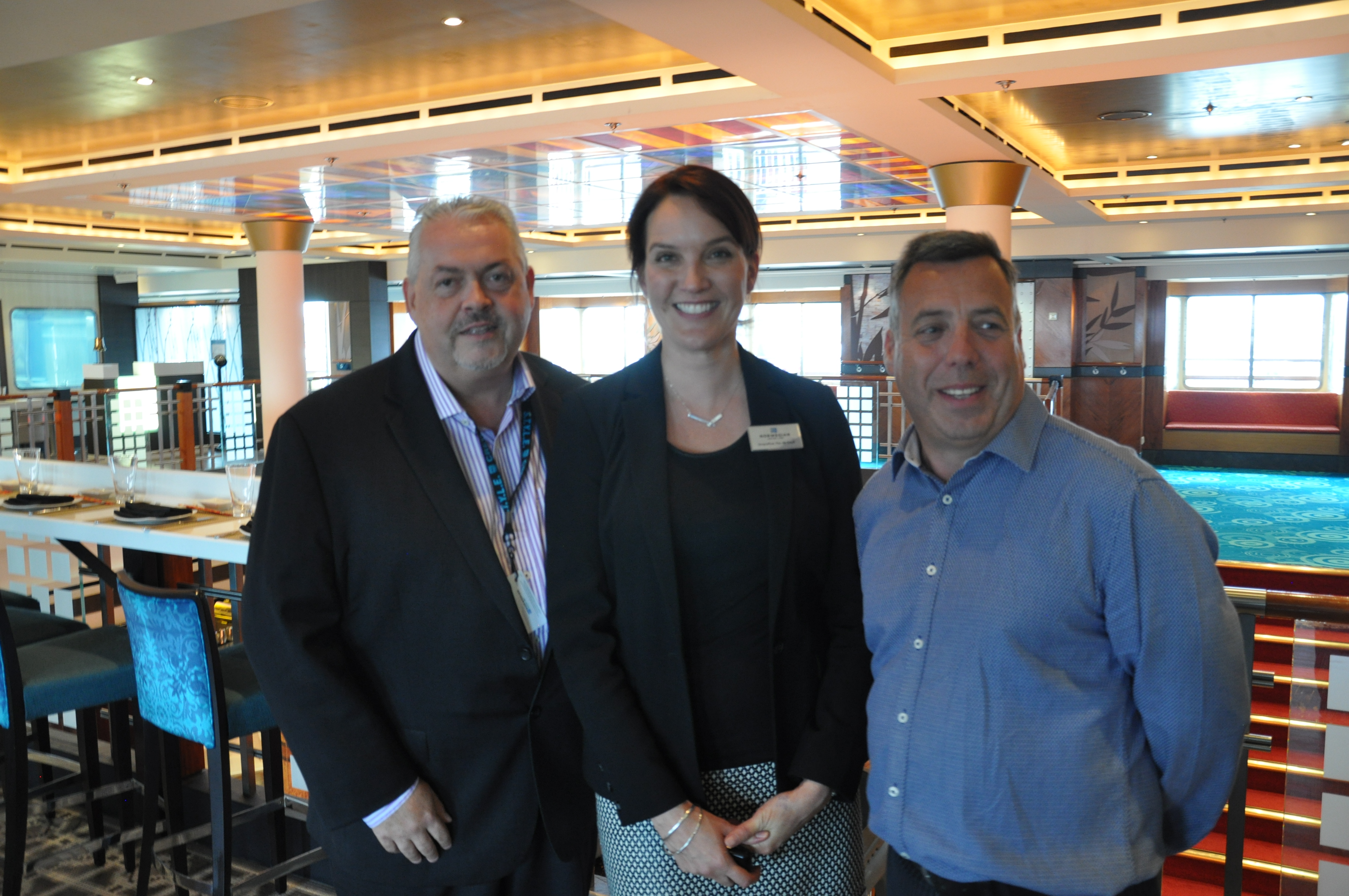 Norwegian Cruise Line staff: Francis Riley – senior vice-president, Jacqueline van de Stadt – marketing and PR manager northern Europe and MEA, Nick Wilkinson – general manager for northern Europe and MEA.