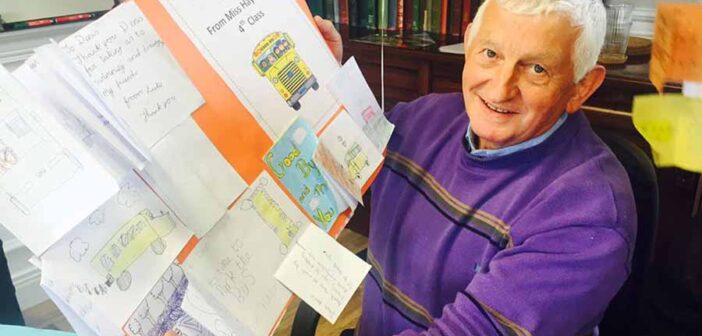 Denis Lynch, now retired, was also popular school bus driver for many years. His’ wife, Peggy, joined him for the presentation.