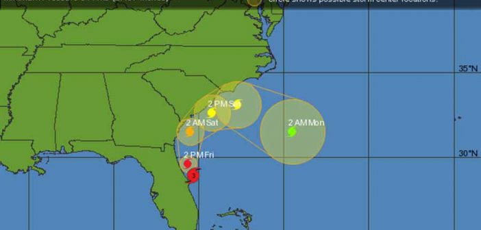Wind speeds decreased as it continued its course in the Atlantic Ocean travelling towards the coast of northern Florida. The hurricane was expected to blow ashore early Friday north of West Palm Beach, and then slowly push north for the next 12 hours along the Interstate 95 corridor, through Cape Canaveral and Jacksonville.