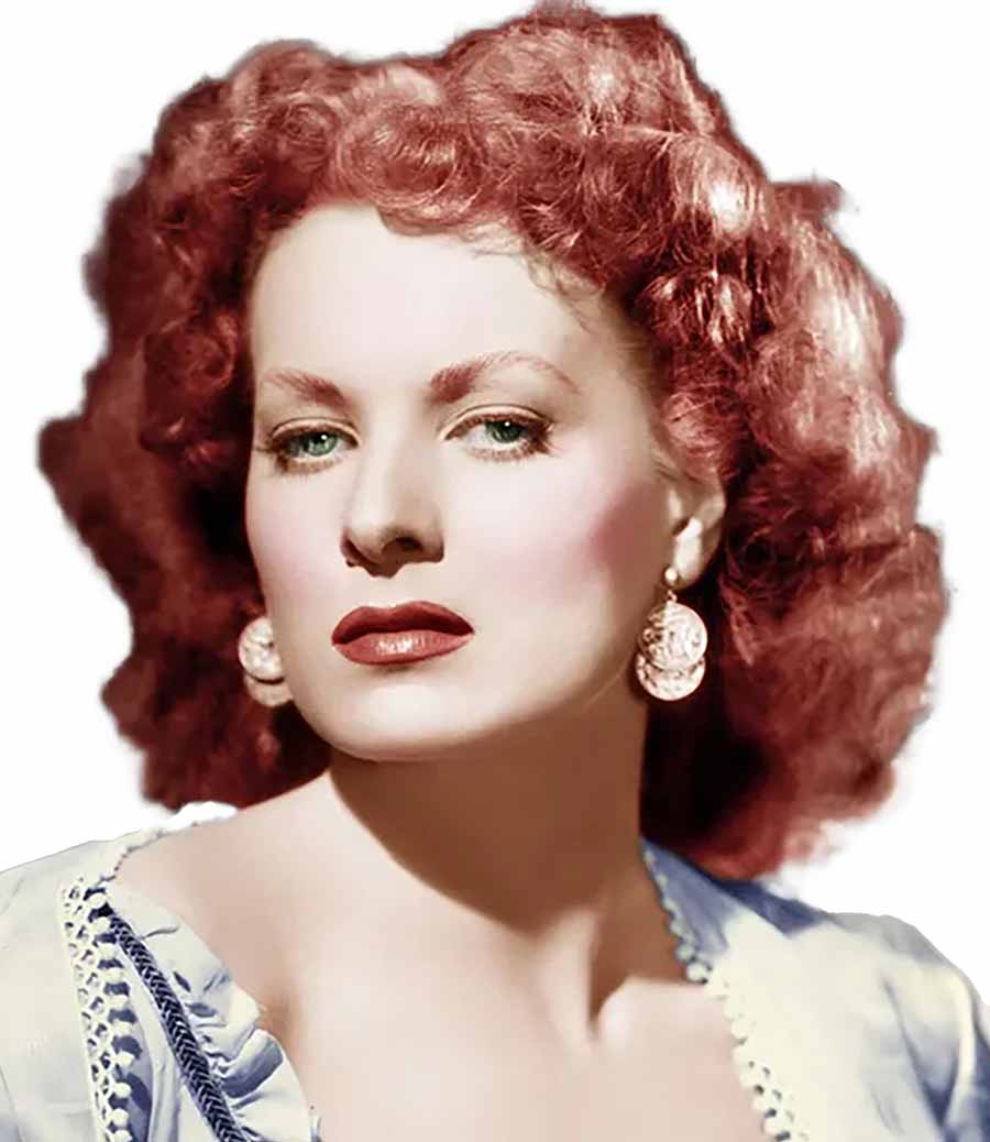 Then two things happened. In 1942, technicolour was invented. Striking red hair, hazel eyes and pale skin, Maureen was made for the new medium.