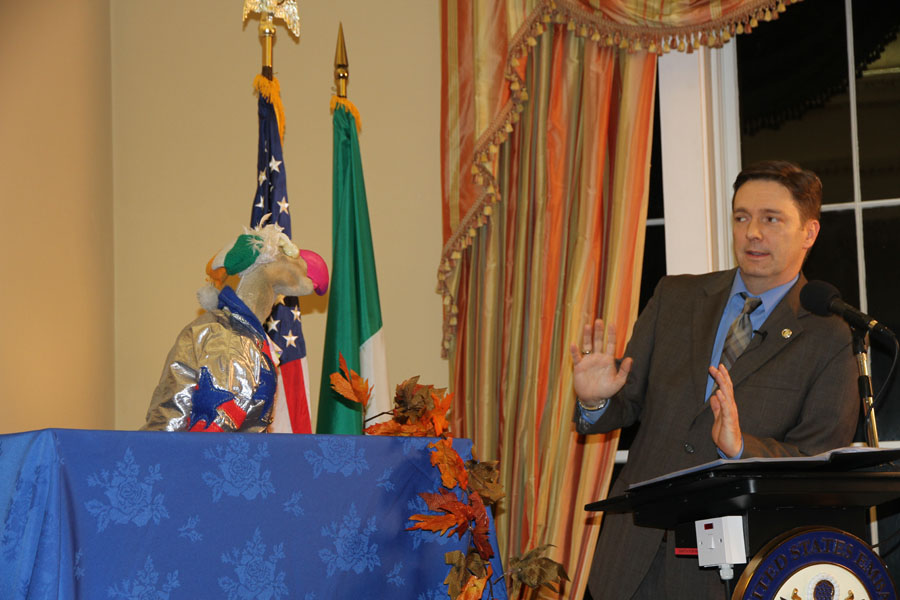 The Chargé d’Affaires of the United States Embassy, Reece Smyth, has pardoned Dustin the Turkey at a Thanksgiving Reception at the US Ambassador’s Residence in Dublin.