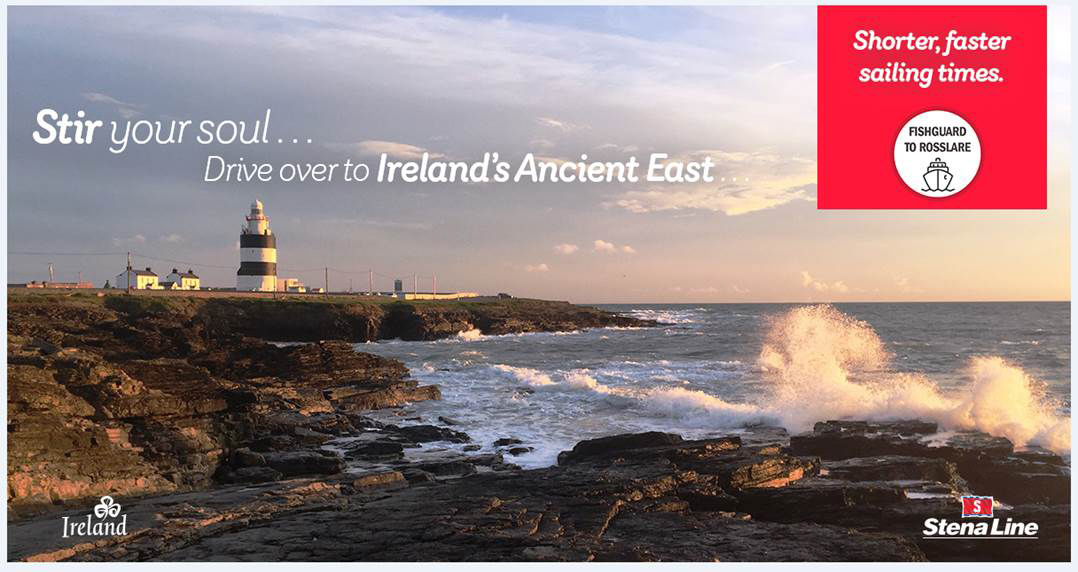 As well as highlighting ease of access, the ads are encouraging British holidaymakers to “Stir your soul … Drive over to Ireland’s Ancient East”.