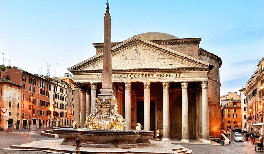 From the Palatine Hill, descend and walk fifteen minutes through the charming streets of the historic centre to the Pantheon. This remarkably well-preserved temple, dedicated to all the gods, was originally built by Marcus Agrippa around 27 BC and completely rebuilt by Emperor Hadrian between AD 118 and 125. Its massive concrete dome, with an oculus at the centre, remains the largest unreinforced concrete dome in the world and has inspired architects for centuries. The Pantheon also serves as the burial place of notable figures including the artist Raphael (1483–1520) and the first two kings of unified Italy. Take fifteen minutes inside to admire the engineering genius and the play of light through the oculus.